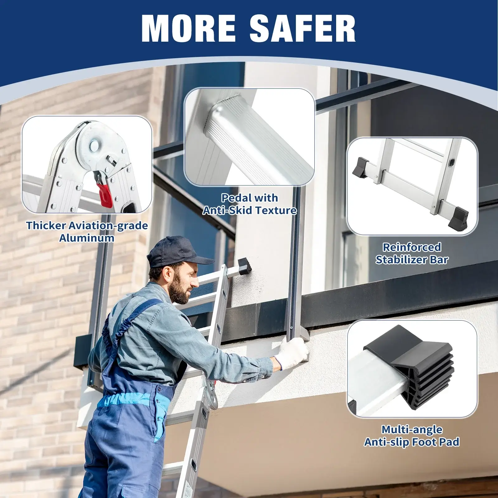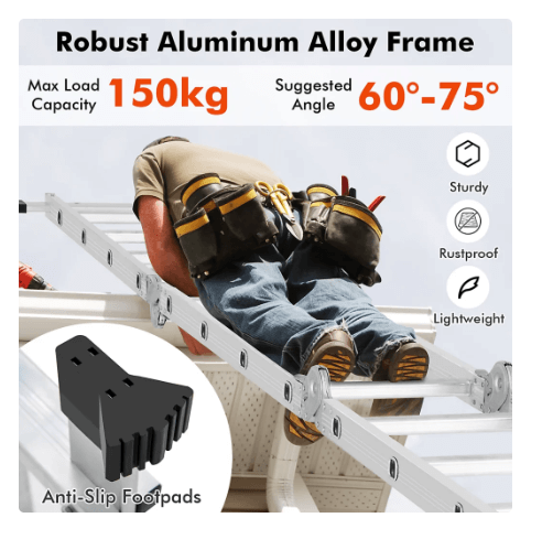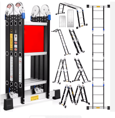 This ladder is built with heavy-duty, lockable safety hinges that keep every position firmly secured. Once you adjust it into any of the 7 ladder types, the hinges lock automatically, preventing wobbling, slipping, or sudden folding.