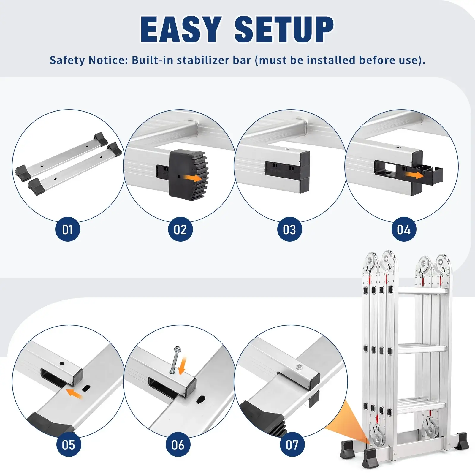 • 7-in-1 Functionality: One ladder replaces all your step, extension, scaffold, and platform ladders.